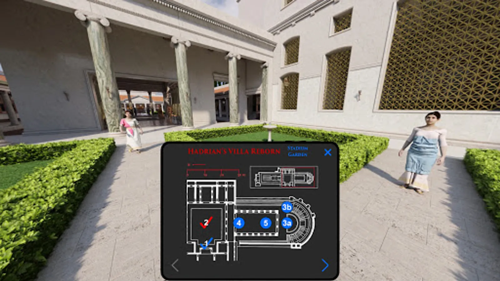 Anyone who takes Flyover Zone’s virtual tour of the Stadium Garden comes away knowing far more about it than even a visitor to the actual archaeological site, now reduced to a grassy field. If you are planning to go to Tivoli to see the villa, you will get more out of your visit after taking Flyover Zone’s virtual tour. And, since the virtual tour runs not only on PCs and VR headsets but also on smart phones (Android and iOS), you can easily take the virtual tour with you when you go to the archaeological park!