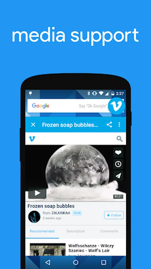 Bookmarks and history are included so you can easily restore past links or quickly access bookmarked pages.