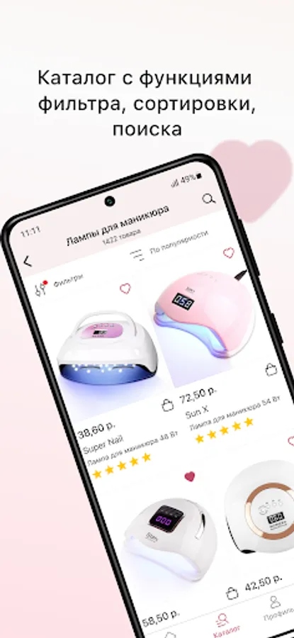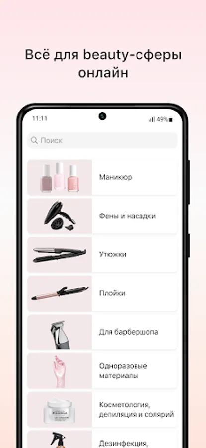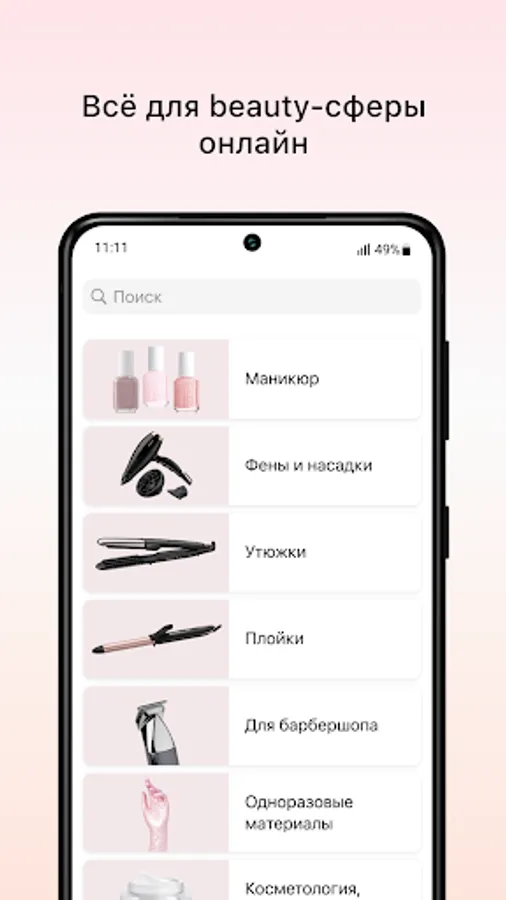 The For Beauty Online Shop application contains products of the following categories: disposable products, manicure, cosmetology, depilation and solarium, brushes, shampoos, disinfection and sterilization, hair dryers and nozzles, irons and curling irons, everything for a barbershop. We are constantly expanding our assortment while maintaining the quality of delivery.