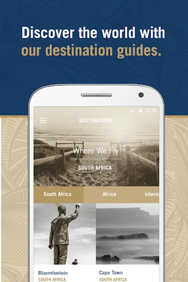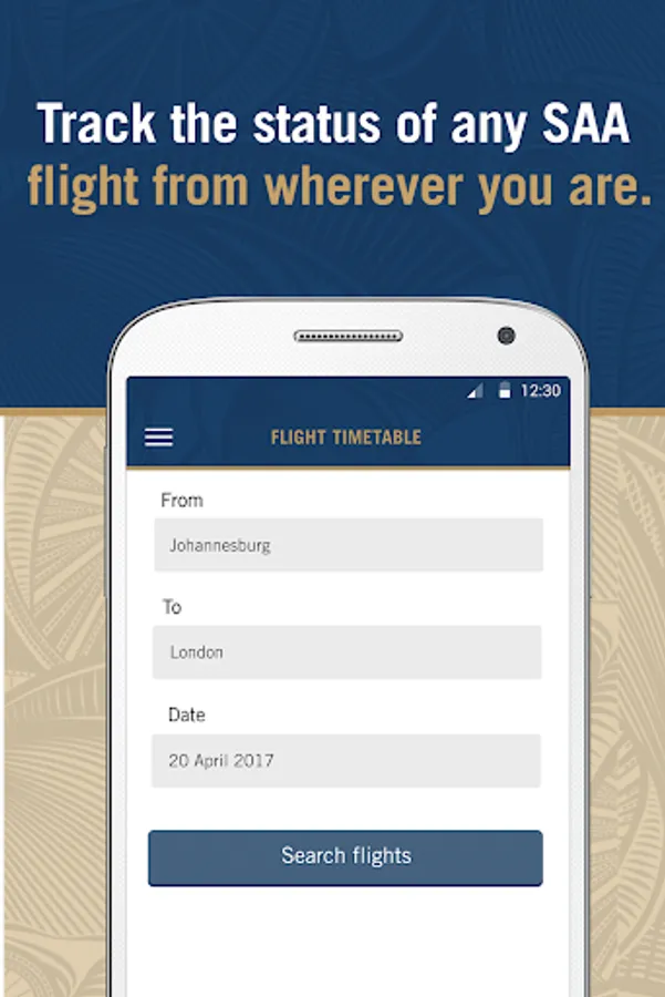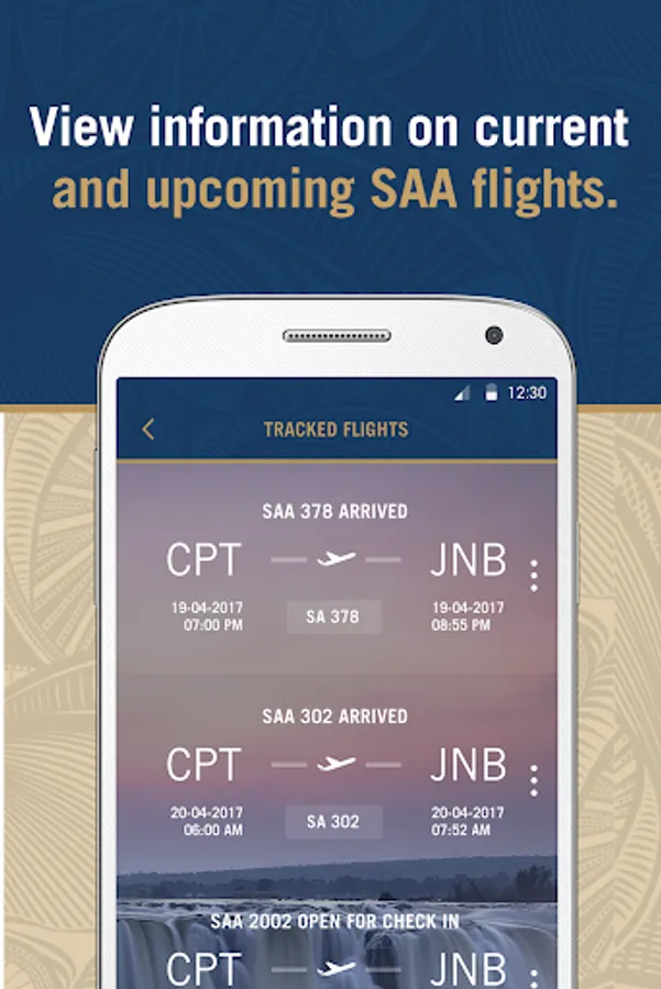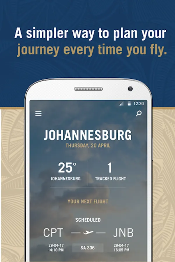 A world class flight experience now starts on the ground. The SAA app literally puts your journey in your hands. With features that allow you to check flights, manage bookings, check in for a flight and also check out all the information you need about our destinations - the SAA app ensures that you travel with ease and comfort. Here are some of the features you can enjoy while using the SAA app: