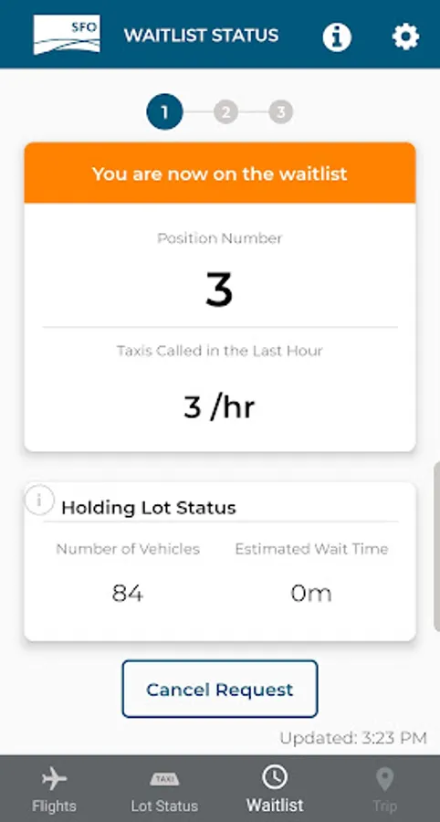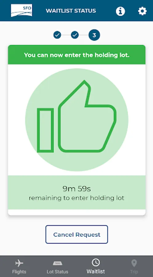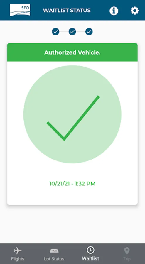 SFO's official app for San Francisco taxi drivers operating at the Airport allows drivers to request permission to pick up at SFO, wait in line virtually, and validate the taxi's trip within the SFO "short trip" geofence after picking up a passenger at SFO.