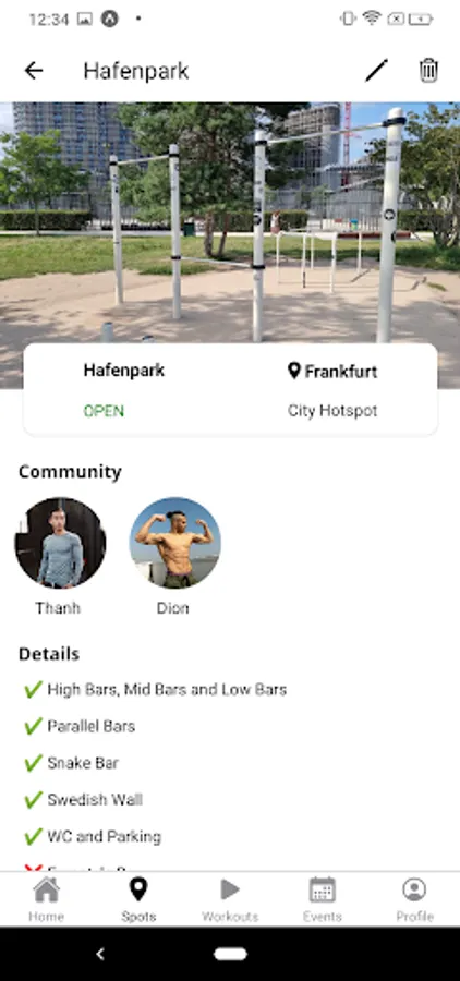 Join communities of people frequently working out at a specific park and connect with them via instagram.