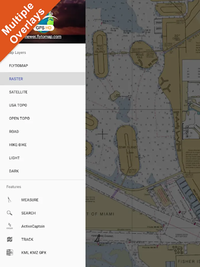 Worldwide Marine and Outdoor Maps available when connected, thanks to viewer.flytomap.com
