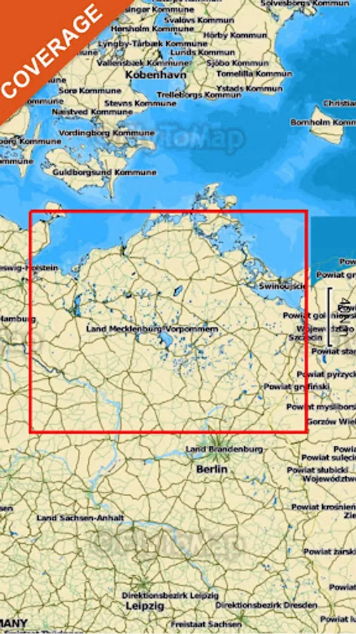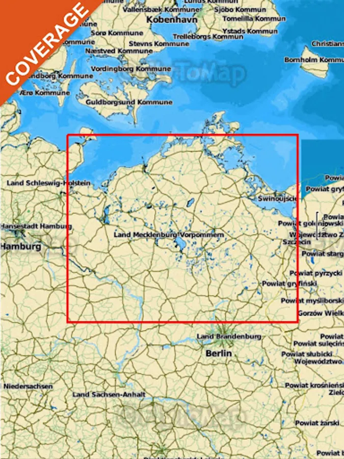The cartography of Lakes Mecklenburg - Vorpommern is included in this application