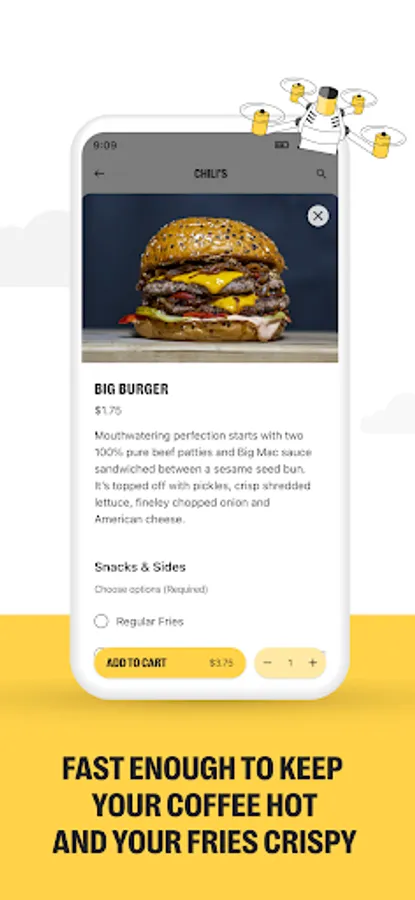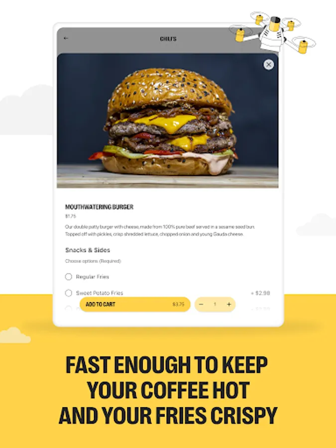 - No contact, order from the comfort of your home and our drones will take care of the rest.