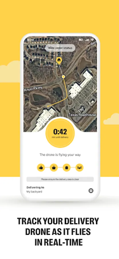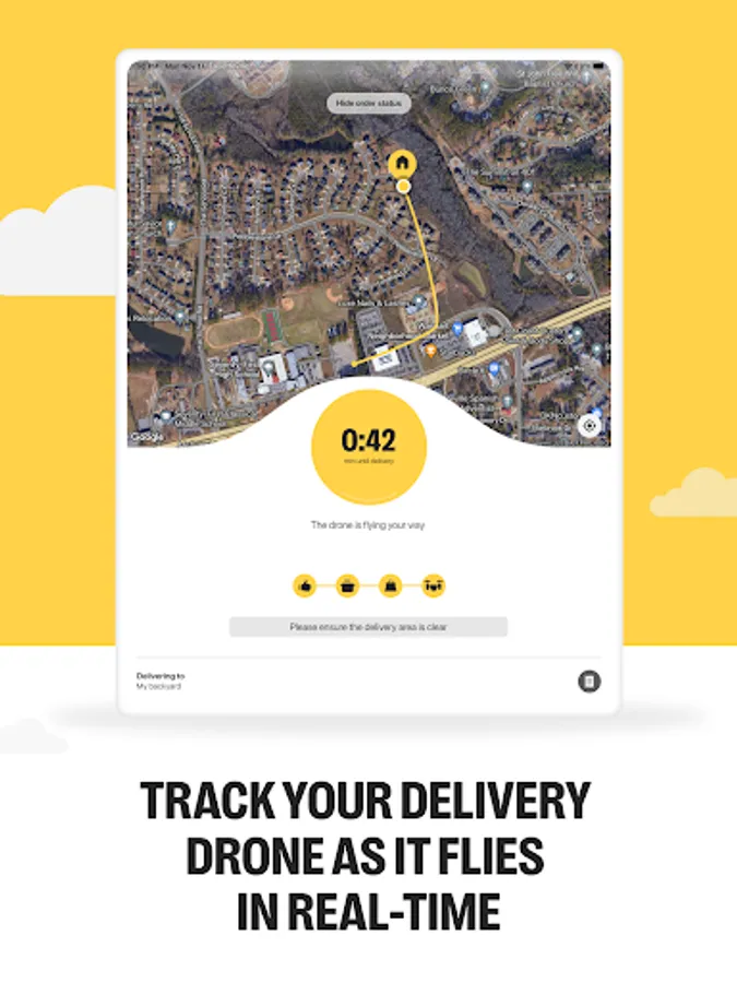 - Follow the drone’s flight in real-time as it flies to your backyard