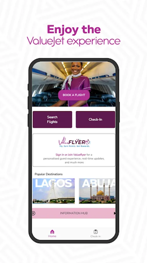 Choose additional services, or change your flights at any time. With the ValueJet app, you can also buy additional bags and also confirm your flight itinerary - all on the go.