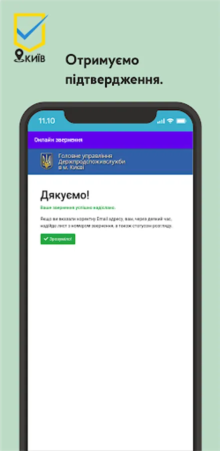 After clicking the "Send" button, the appeal will be sent to the State Service for Food and Consumer Protection in Kyiv.