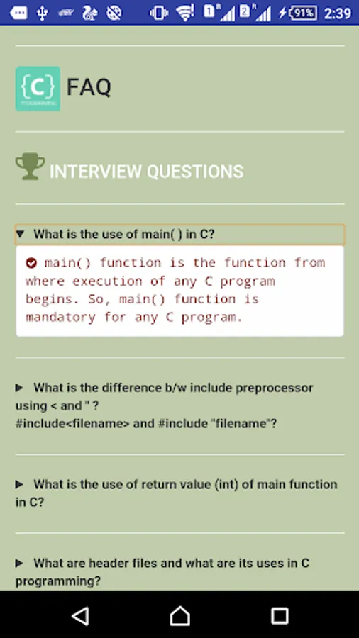 C Prowess is a C programming app, contains an Interactive Quiz on C and very frequently asked questions (FAQ) of Technical Interviews.