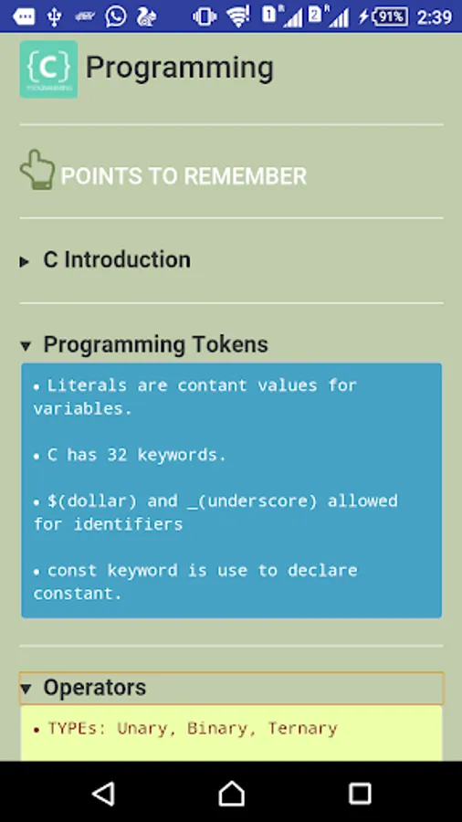 C Prowess is the app to learn C programming language, that includes basic, intermediate and some advance C programming concepts to learn.