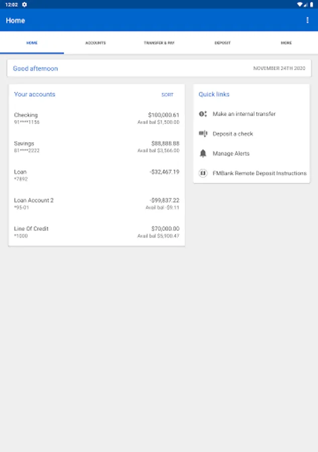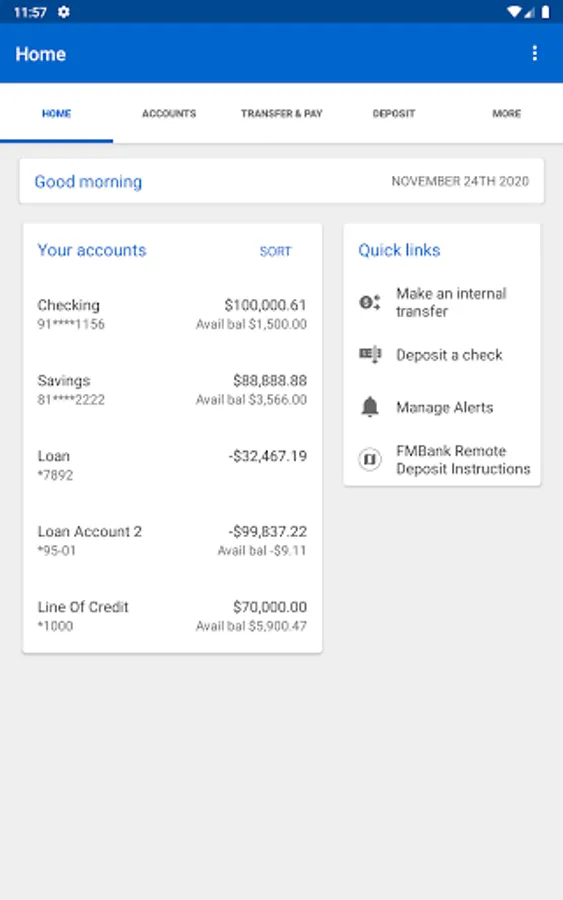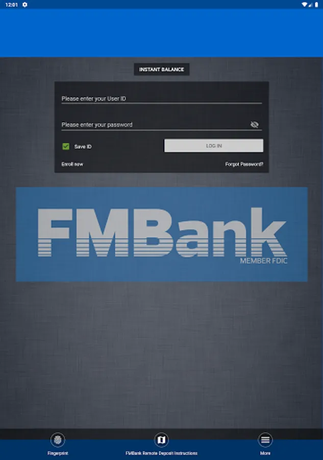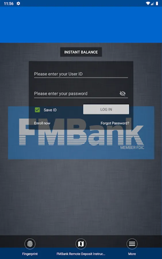 Securely manage your money using FMBank Mobile Banking. With internet access, you can view accounts, view recent transactions, transfer funds between accounts, deposit checks right from your device, pay bills and search for Farmers and Merchants Bank locations and ATMs.