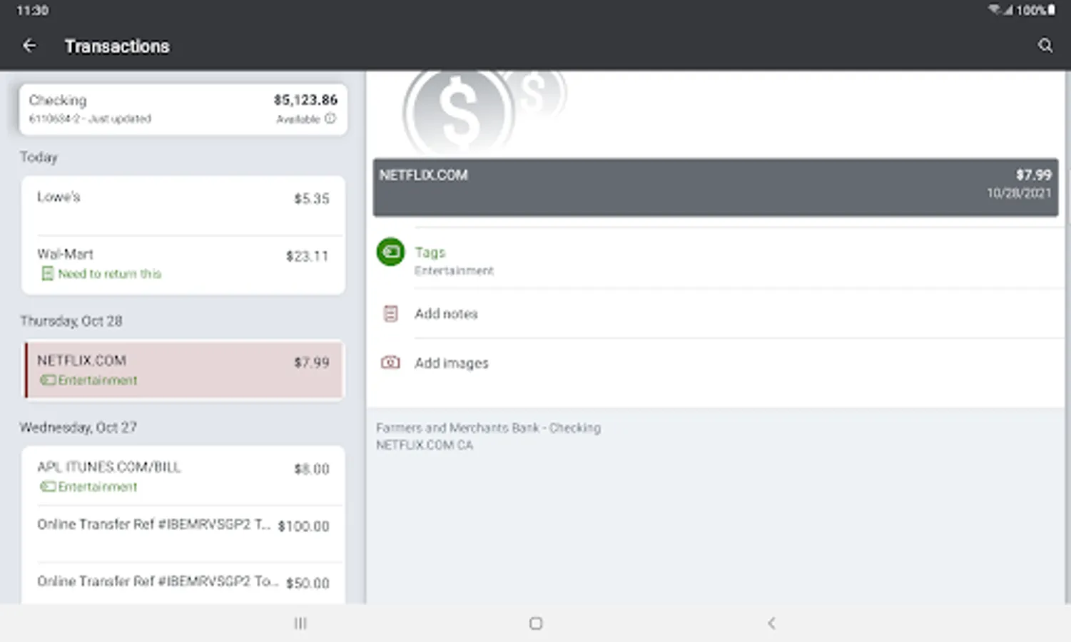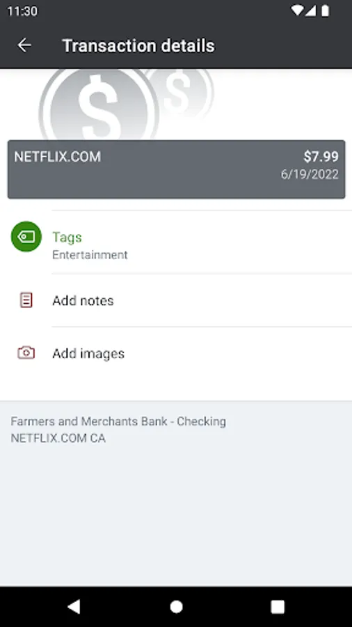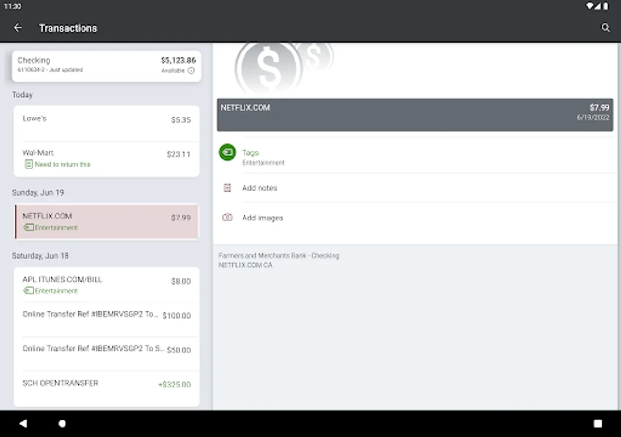 • Keep your transactions organized with tags, notes and photos of receipts and checks