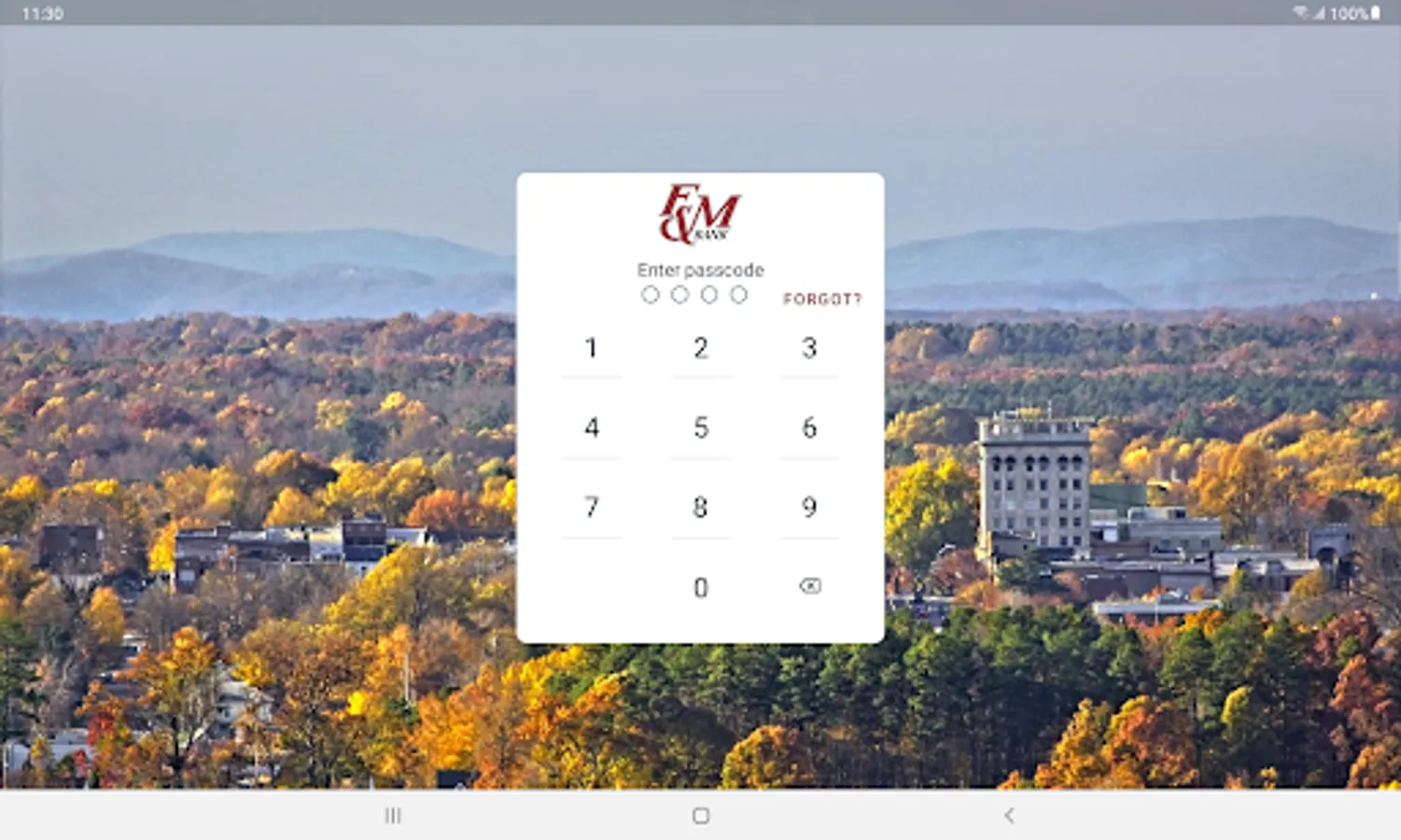 To maximize the F&M Bank app security, access requires a passcode or Touch ID®/Face ID® (on supported devices). Please note, while F&M Bank offers this app as a complimentary service, usage rates may apply from your wireless service provider.