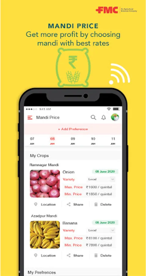 Introducing FMC India Farmer App, one-stop solution App for the leading crop challenges of Indian farmers. This App is a unique suite of the most sought information and services by farmers. Be it finding the right solution to various Insects, Weeds or Disease challenges, Crop nutrition needs, Finding the nearest authorized sellers, Knowing prevailing mandi prices, or Getting hyperlocal weather forecast to plan the best crop schedule – FMC India Farmer App has a solution for all of it, right at your fingertips! Plus - Navigate all of it on an ultra-user-friendly interface. Download the app now! "