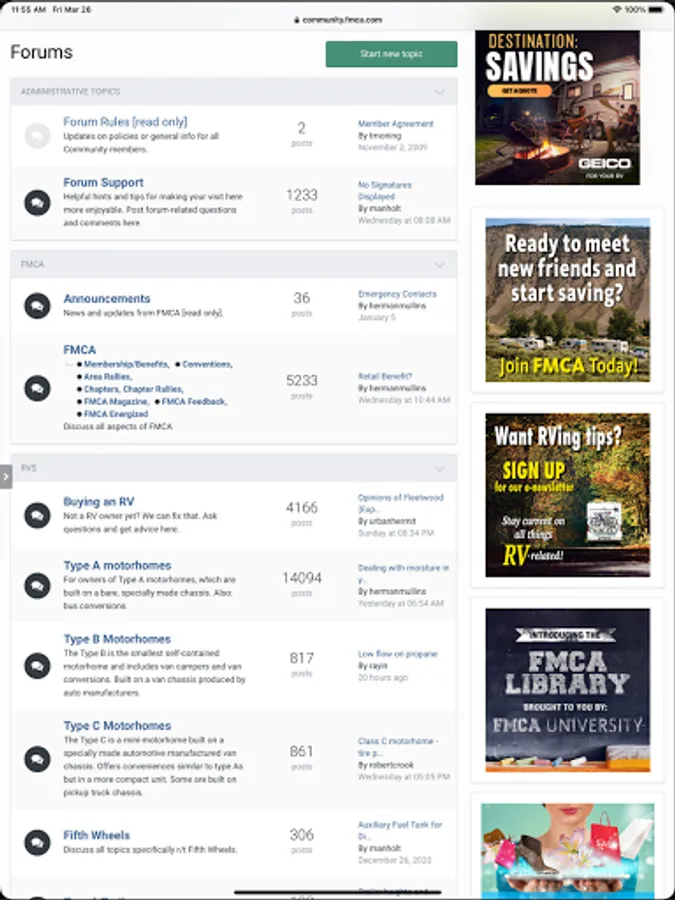 - Auto-login to the FMCA Forums