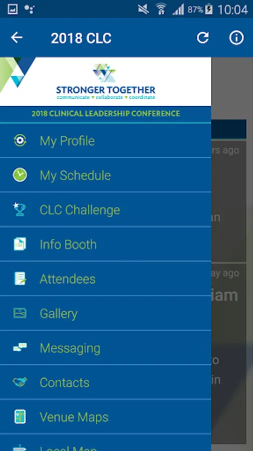 Meeting content including, agenda, conference material, surveys, CLC Challenge, and Q&A.