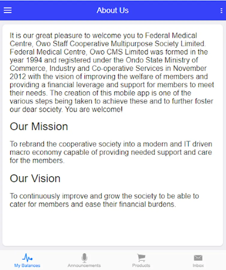 Mpobile app for Federal Medical Center Owo Staff Cooperative Multipurpose Society Limited.