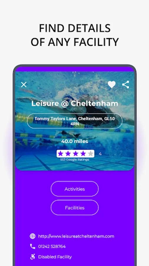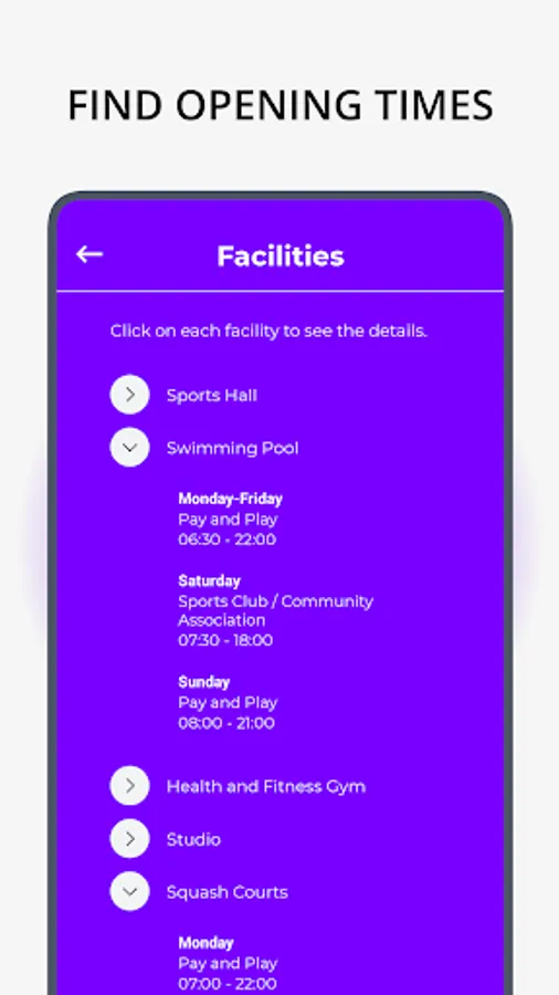 Save your favourite facilities to stay up-to-date with facility improvements and updated opening hours.