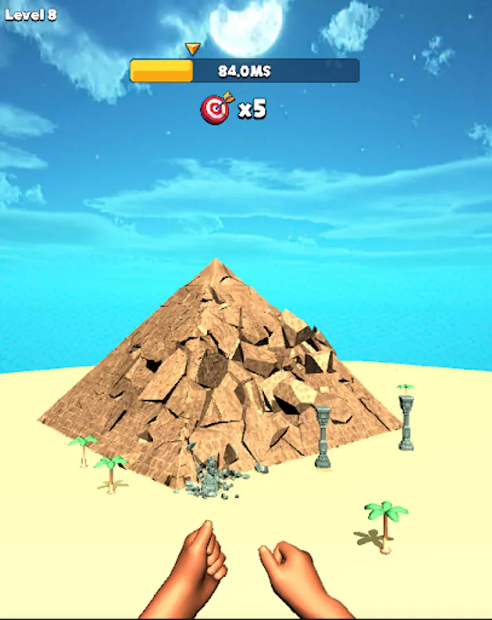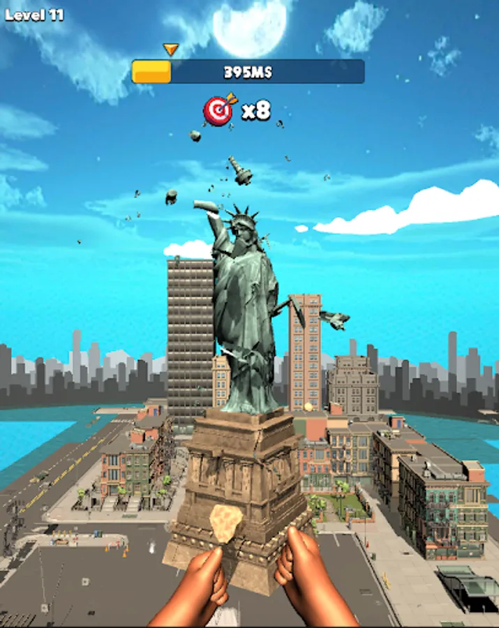 Shoot rocks at the Pyramids, Eiffel Tower and other iconic structures.