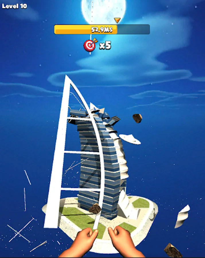 Upgrade your stats to be able to demolish bigger and bigger buildings!