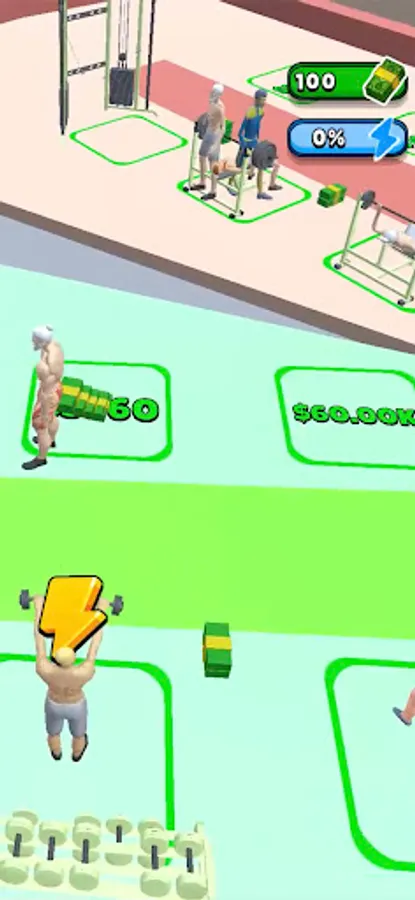 Build your Gym and get Customers! Collect your earnings, buy new equipments and expand your Gym!