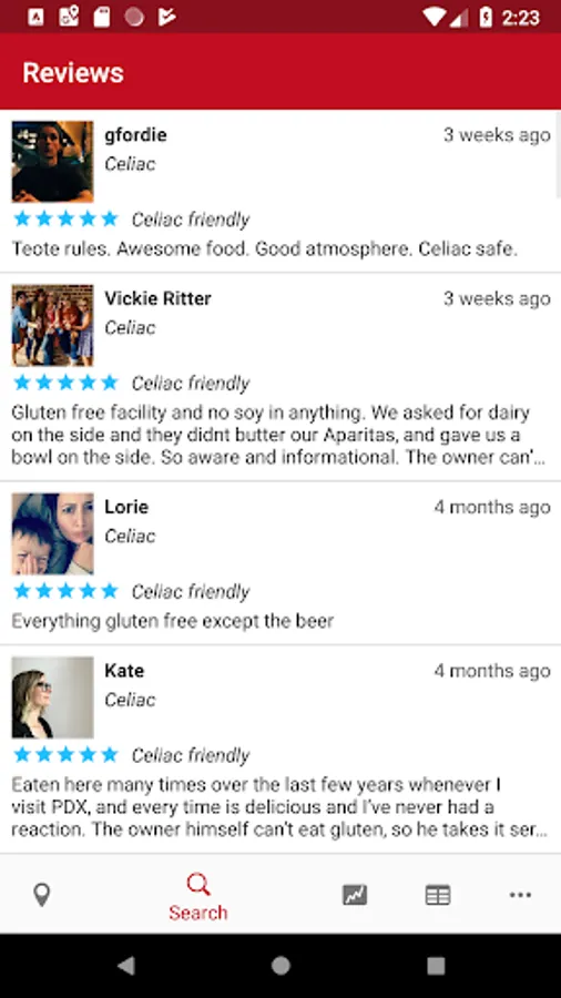 The best gluten-free restaurant finder out there! Whether you're celiac or on a gluten-free diet for other reasons, Find Me Gluten Free helps you easily eat gluten-free. Find restaurants, fast food, bars, cafes, grocery stores and more! Easily find dedicated gluten-free places with one tap. Search your current location or a specific address. View menus, call, or get directions for each business. View others' ratings and reviews and submit your own. We're constantly adding businesses, so suggest your favorites. Happy gluten-free dining!