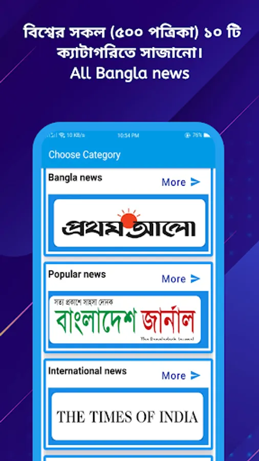 Hear the Bengali and English Newspapers are arranged separately. Besides, international Newspapers have been arranged differently.