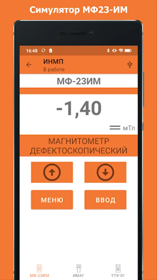 The INMP interface is a simulator of well-known non-destructive testing devices, such as MF-23IM, IMAG, TPU-01