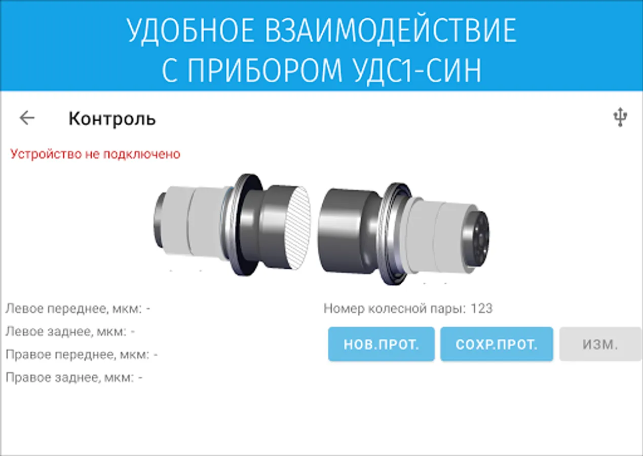 The application is intended for collecting, storing and processing the results of monitoring the interference fit of the bearing inner rings on the axle journal in car repair enterprises. Through this application the connection to the UDS1-SIN device is carried out.