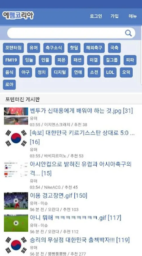 Currently the largest humor, soccer, internet broadcasting related forum in Korea.