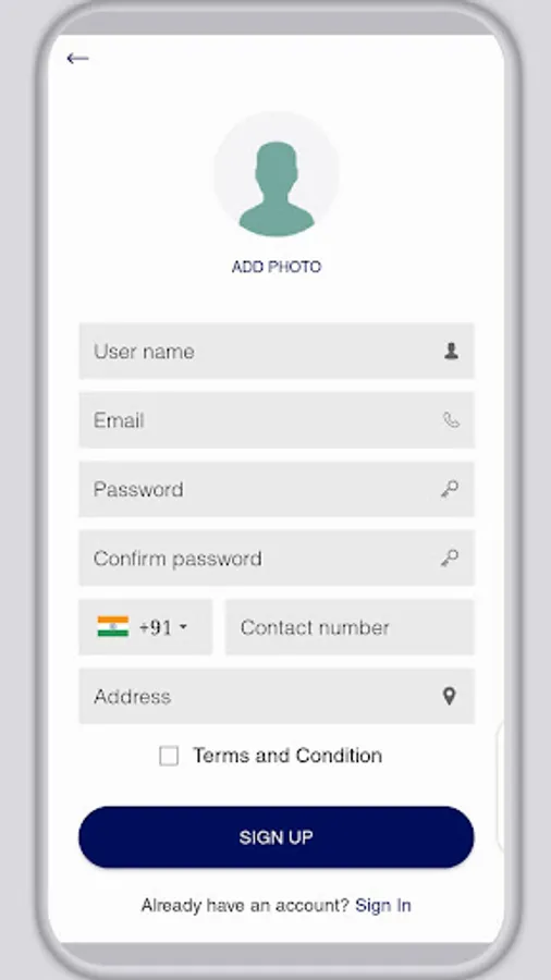 4. Signup – User can signup to the application by entering name, User name, Password, Address