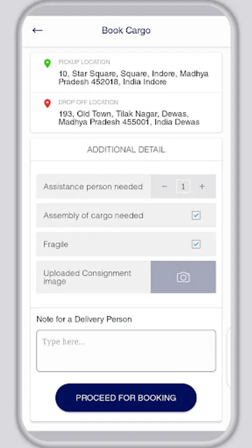 7. Adding of additional details – User can add the number of person required for cargo pickup and even can add images of the consignment