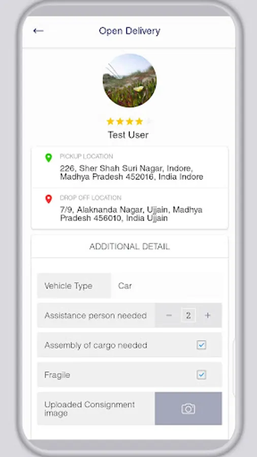 11. Cargo delivery person profile – User can see the basic detail of the person who would be delivering the cargo along with the ratings displayed with profile picture