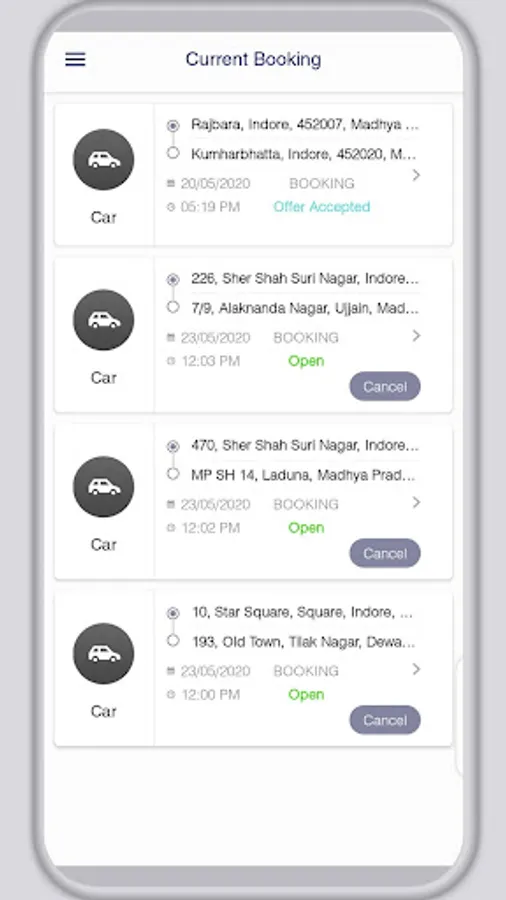 10. Current Bookings – User can view the list of offers made by different cargo delivery person and can accept any one offer which suits the best
