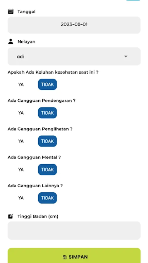 Aplikasi screening kesehatan pada nelayan untuk mendeteksi adanya resiko penyakit menular dan mendeteksi resiko penyakit akibat penyelaman