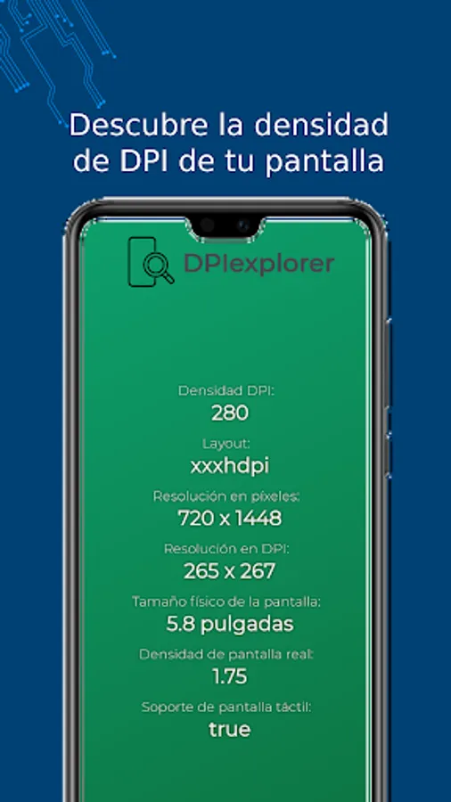 DPIexplorer is a must-have app for all Android device users who want to know and better understand the features of their screen. Find out the DPI density, pixel resolution and DPI of your screen, and determine the corresponding layout file for the best visual experience. With an intuitive and easy-to-use interface, DPIexplorer gives you accurate and useful information about your screen, on both mobile and tablet devices. Explore and optimize your viewing experience with DPIexplorer!