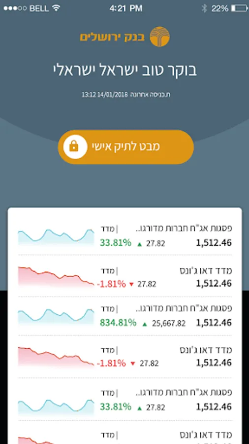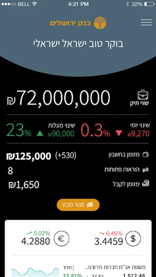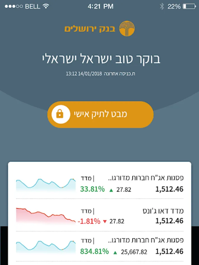 Bank Jerusalem trade is an advanced trading application for Bank Jerusalem customers. The application enables the user to send stocks and derivatives orders to the Tel Aviv Stock