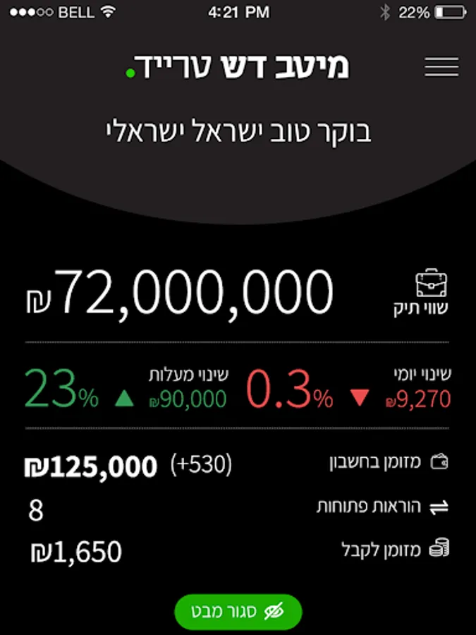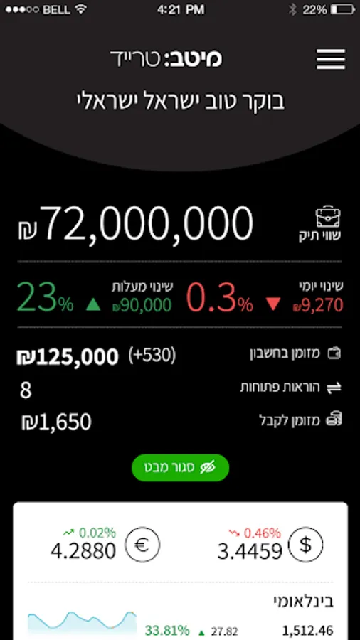 Meitav trade is an advanced trading application for Meitav customers. The application enables the user to send stocks and derivatives orders to the Tel Aviv Stock