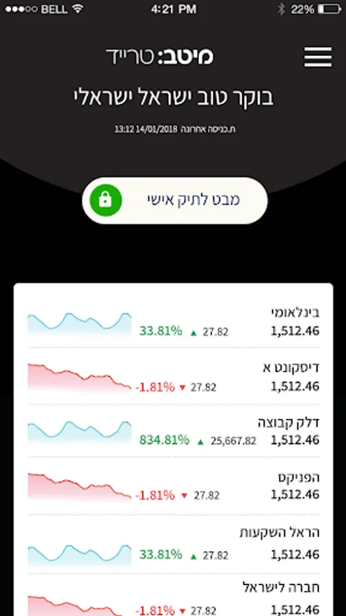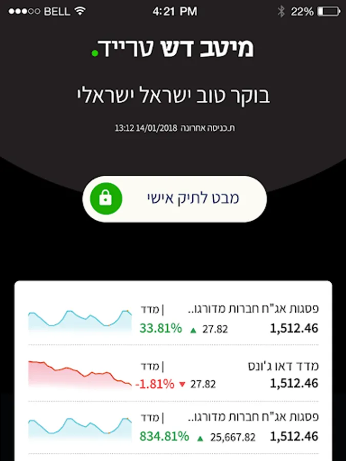Meitav Trade is an advanced trading application for Meitav Investment House clients. The system enables the transmission of instructions for trading in shares and derivatives on the Tel Aviv Stock Exchange, viewing various screens of continuously refreshing market information and viewing account balances.