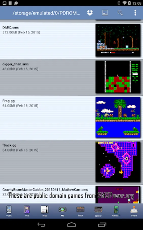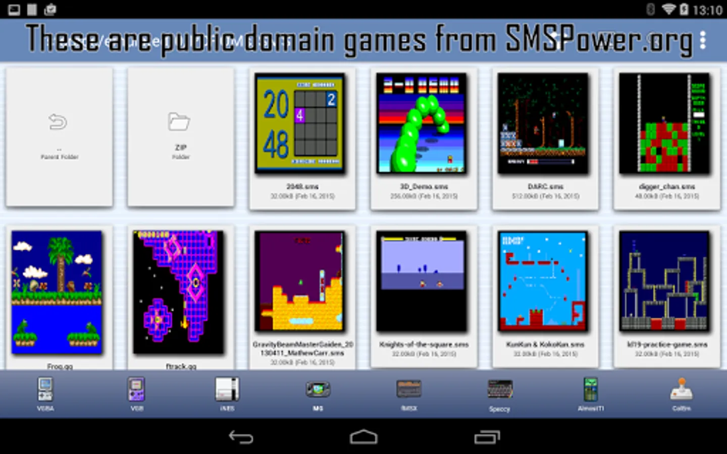 MasterGear emulates MasterSystem, GameGear, and other classic 8bit consoles made by Sega. It runs MasterSystem and GameGear games right on your Android phone or tablet. Save game progress at any time and share it with friends, or play games together on the network. MasterGear also runs Mark2, Mark3, SG1000, SC3000, and SF7000 games and other software.