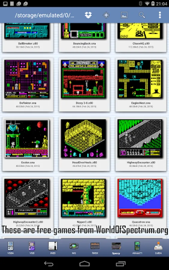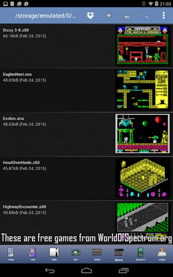 Speccy is a Sinclair ZX Spectrum home computer emulator. It runs software written for Sinclair ZX Spectrum 16k, 48k, 128k, +2, +2A, +3, Timex Sinclair, Sam Coupe, Pentagon, and Skorpion home computers. Features:
