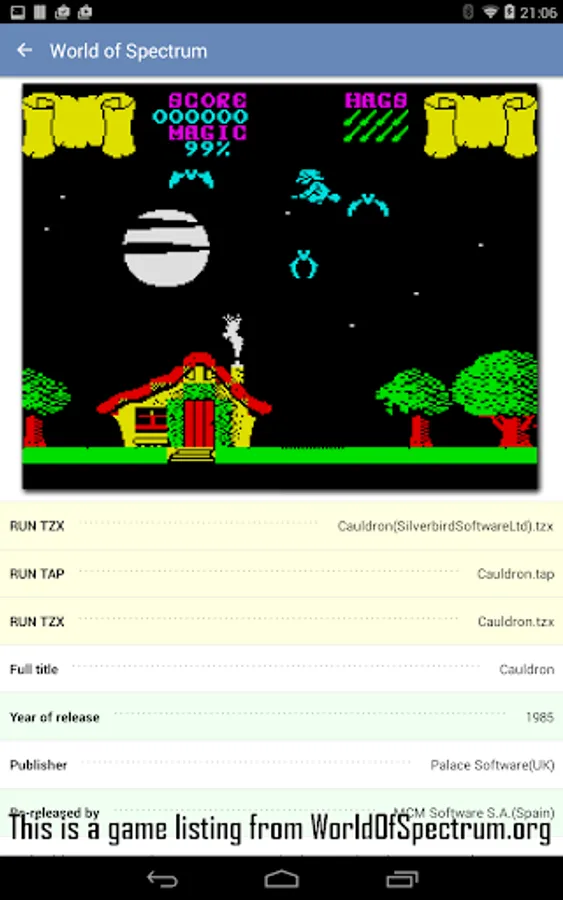 This is the premium, full-featured, ad-free version of Speccy. It includes fully functional World of Spectrum software repository browser, not found in the free version.