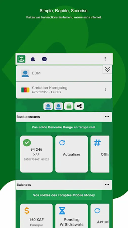 Make your transactions easily, even without internet thanks to the internal ussd engine.