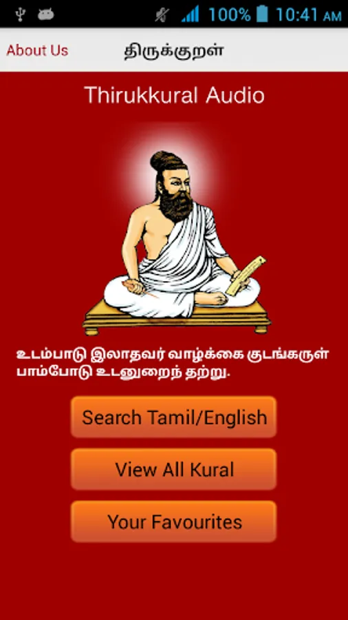 “Thirukkural Audio” helps you to nourish this masterpiece by smooth navigation and rich search option. You can view Kural in both English and Tamil. “Thirukkural Audio” app gives kural in transliteration for those who are not comfortable reading in Tamil.