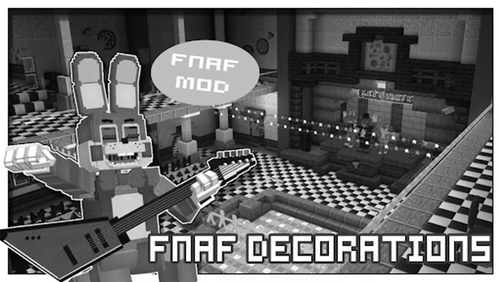 FNaF Decorations addons with which you can recreate the restaurant from the famous FNAF game but now in Minecraft Bedrock! The plot of the famous game Fave Nights at Freddys moves to the pixel world. You can fight her characters on the new FNAF Mods and FNaF maps. Like FNAF Security Breach mod for minecraft, FNaF Realistic include New blocks FNAF Movie Exterior walls and sign, Freddy and Bonnie Stand, FNAF Pets Addon, Animatronics Heads, FNAFverse, Fnaf 1 Dirty Walls, FNAF 3 Posters and many more.