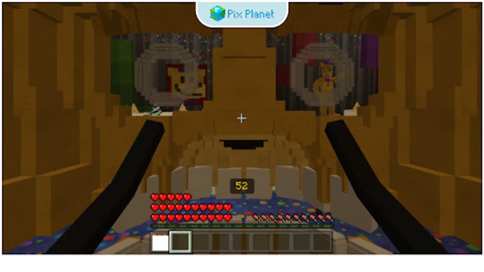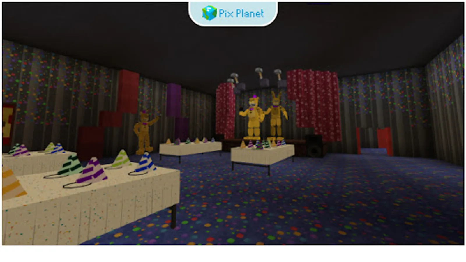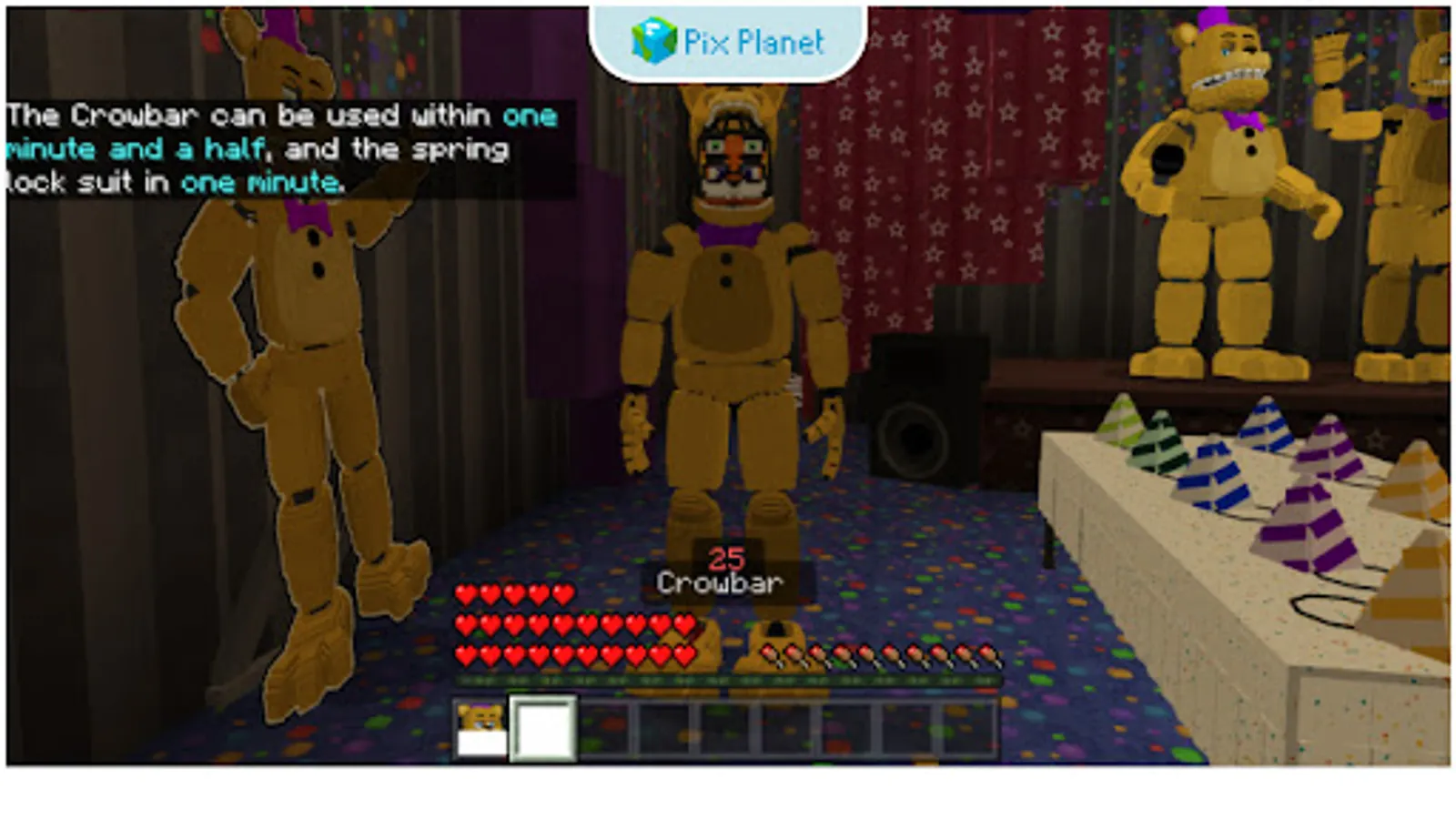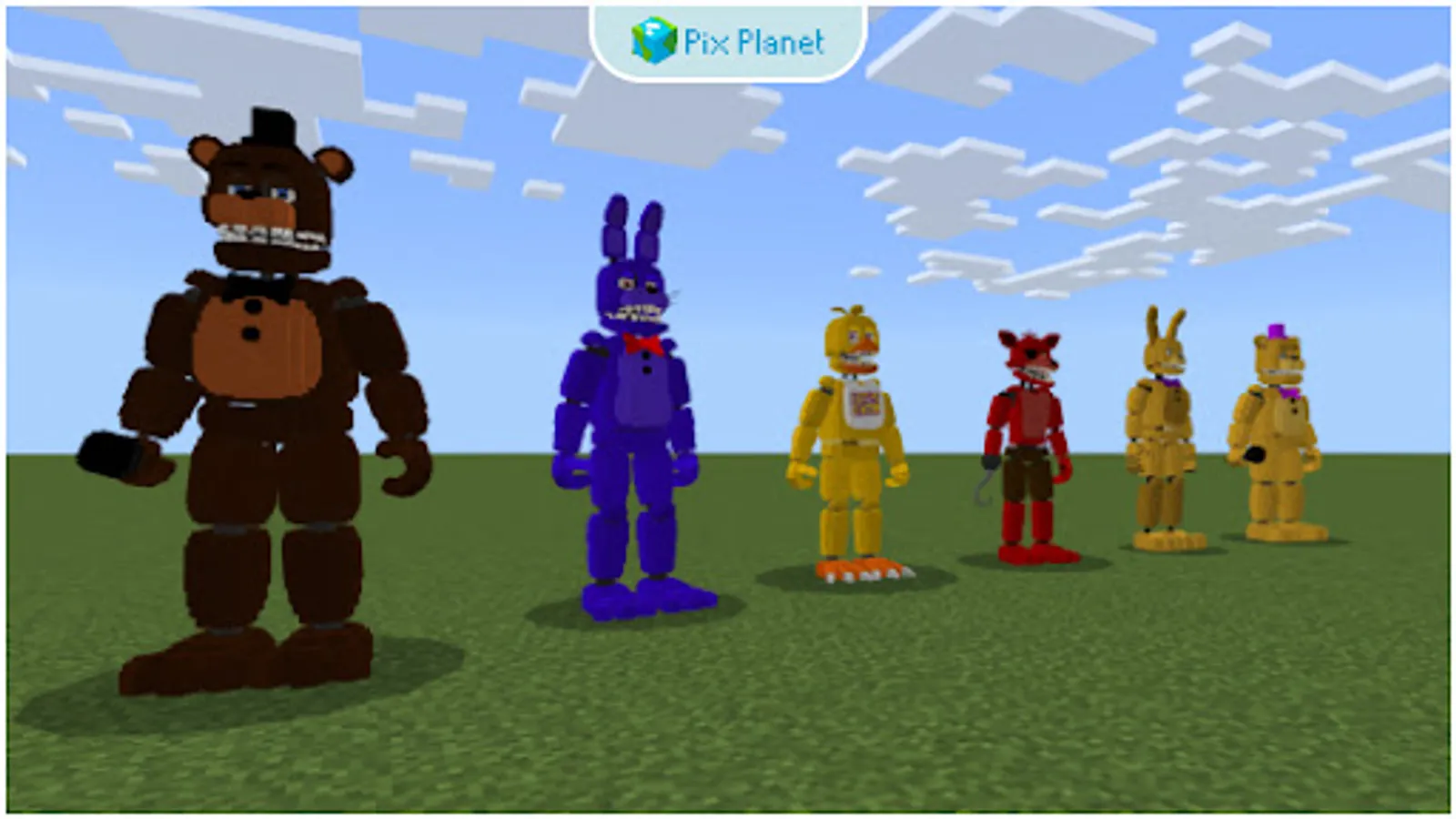 Mod FNAF for Minecraft PE - Adds many heroes from the FNAF game, with whom you will celebrate the party and later fight. For battle, you will have access to different costumes that will give you different characteristics.