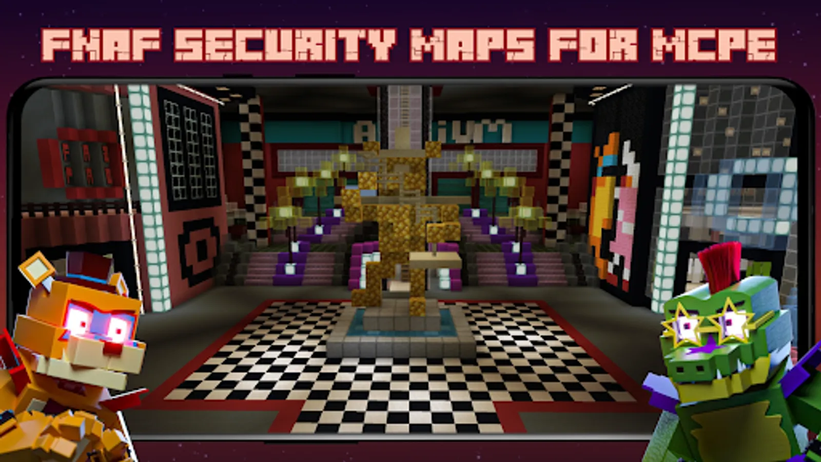 This application will allow you in just a few clicks to open the world of so-called animatronics, which are based on the characters of the popular game. You will have the opportunity to install fnaf security breach mods in minecraft, fnaf maps, animatronics skins including Freddy, Montgomery and others and the rest. We are sure that all the horror fnaf maps presented in our selection will pleasantly surprise you, and fresh fnaf security breach mods for minecraft pe will enlarge the collection of your favorite animatronics addons for mcpe.