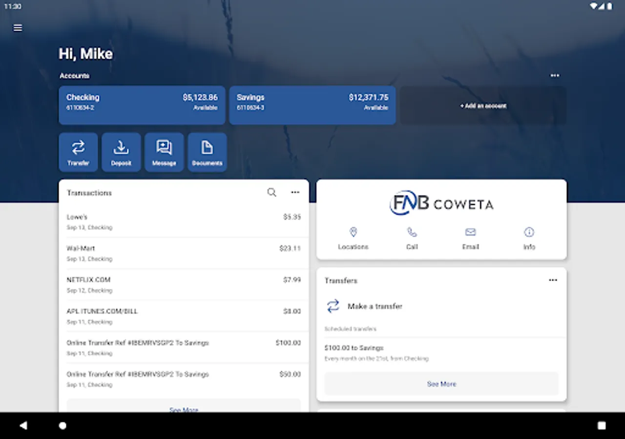 FNB Coweta is your personal financial advocate. It’s fast, secure and makes life easier by empowering you with the tools you need to manage your finances.