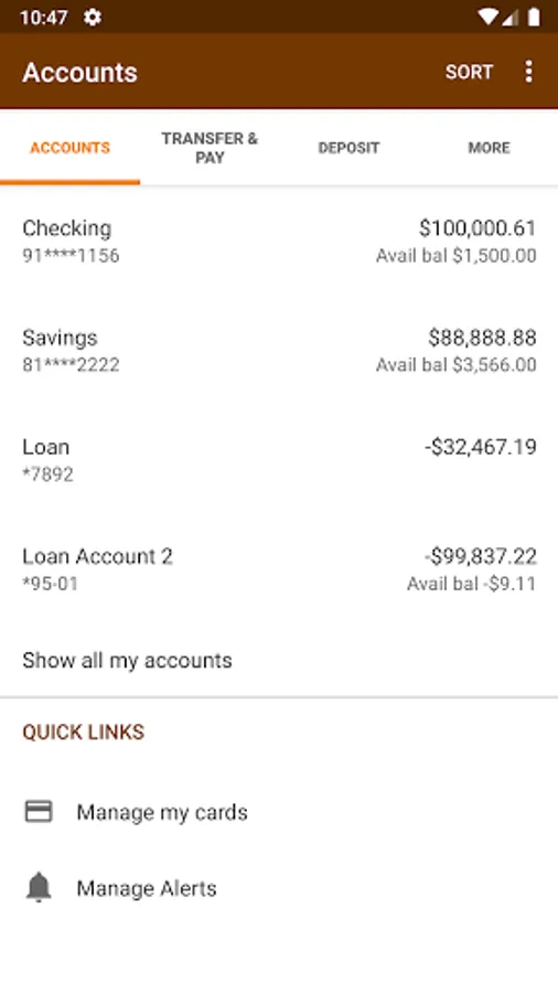 • Find nearby branches and ATMs using the Android phone's built-in GPS. Additionally, you can search by zip code or address.