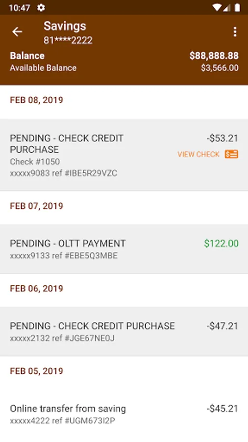 • Check your account balance and search recent transactions by date, amount, or check number.